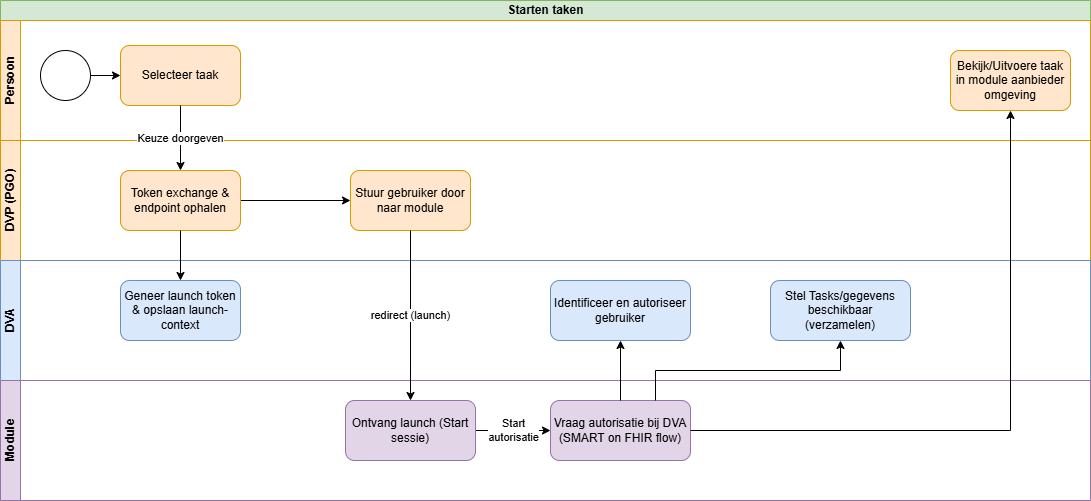 MedMij Core beschrijft processen op het autoriseren, authentiseren en verzamelen van gegevens. Solution design voegt hier een functie Starten en gegevensdienst Verzamelen taken aan toe.